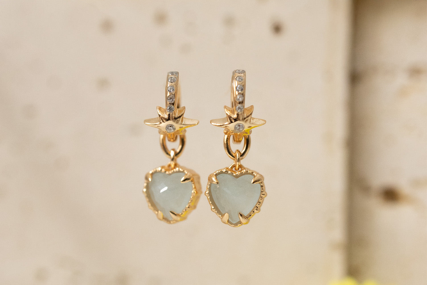 TWIN SOULS HEART EARRINGS - MOONSTONE