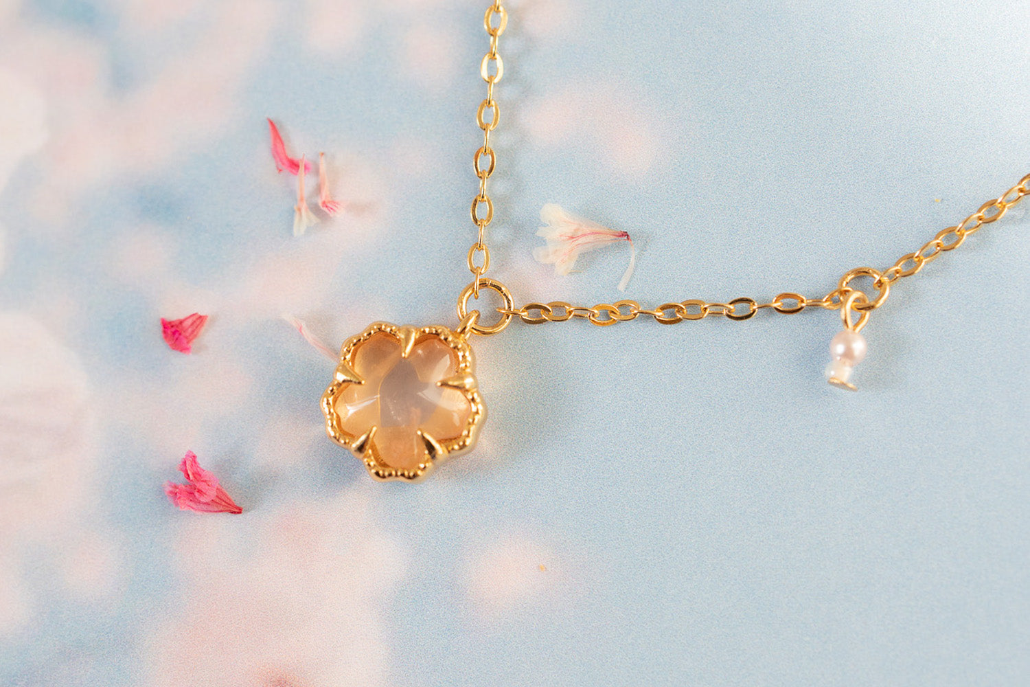 PEACH TWINKLE NECKLACE - ROSE QUARTZ & PEARL