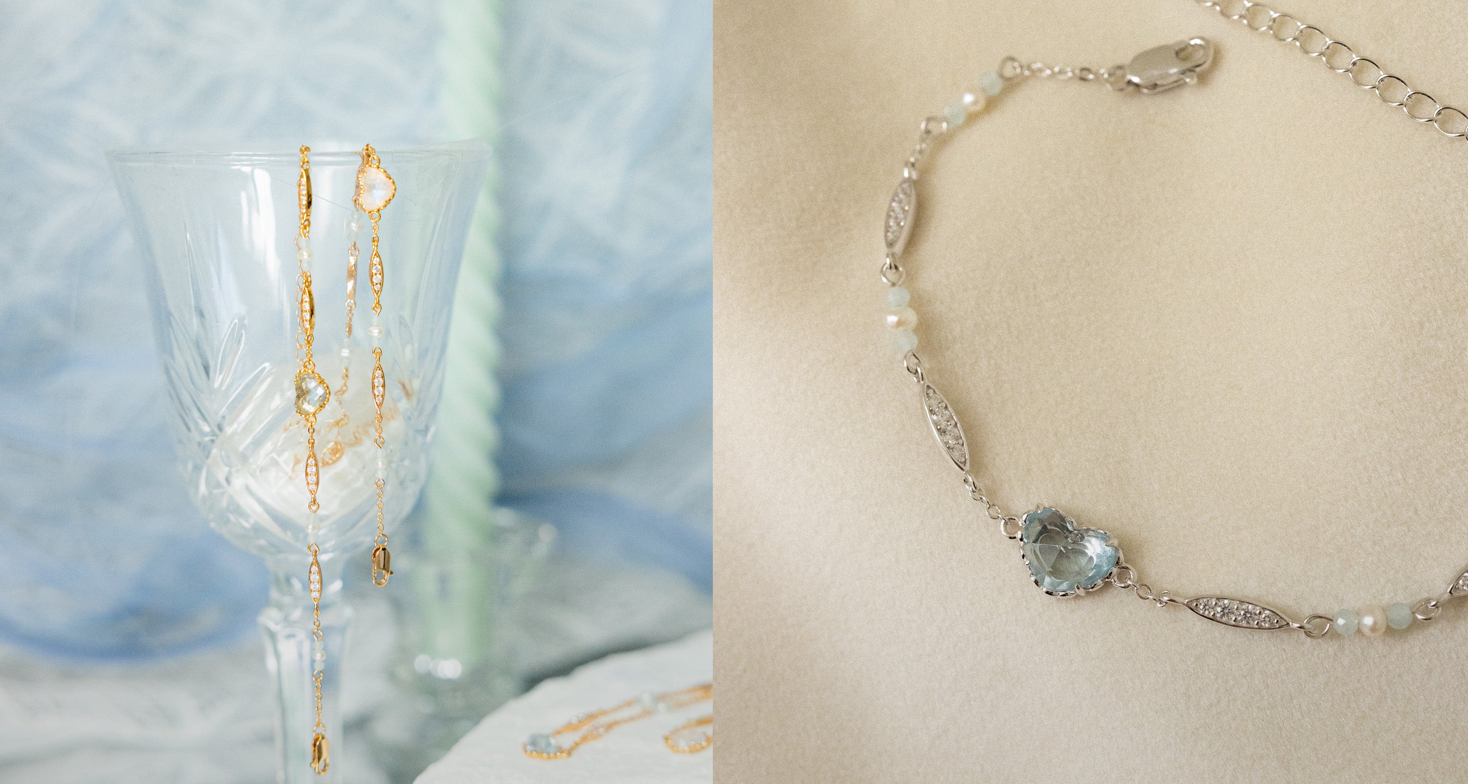 AQUA TWINKLE SILVER NECKLACE - AQUAMARINE & PEARL